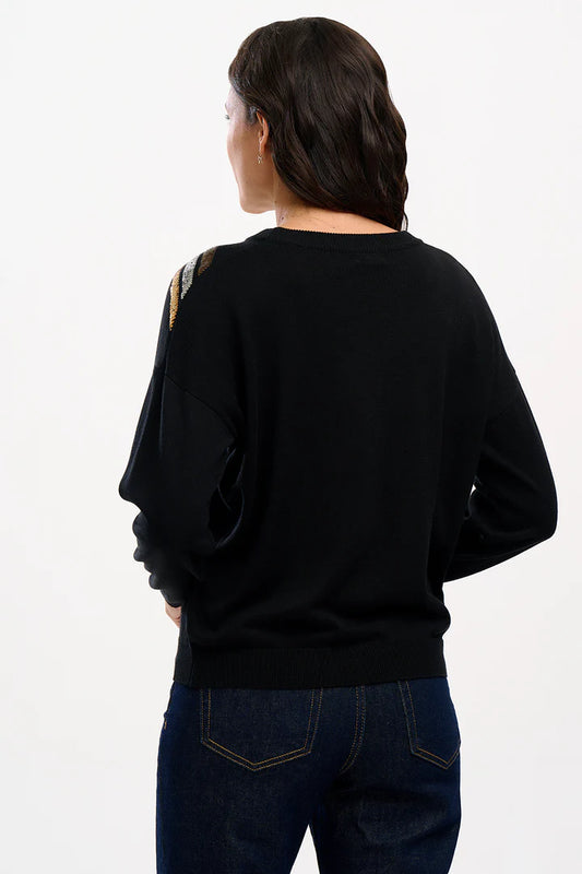 Anjali Sequin Jumper - Black, Chevron Stripes