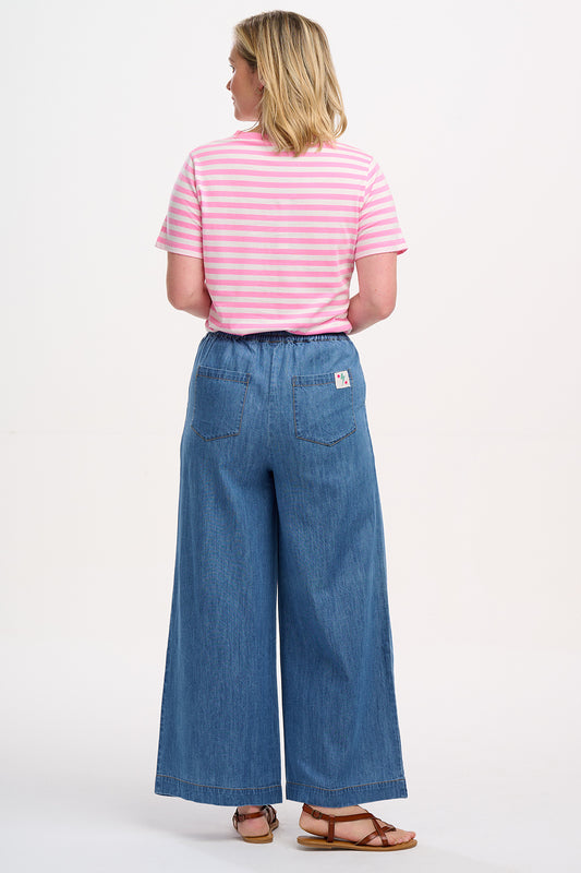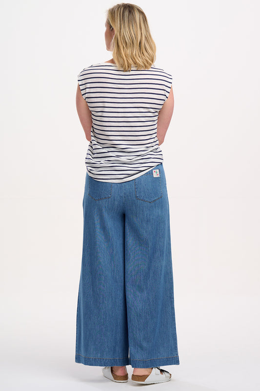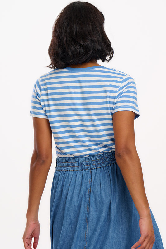 Khloe V-Neck T-Shirt - Off-White/Blue, Stripy Crab