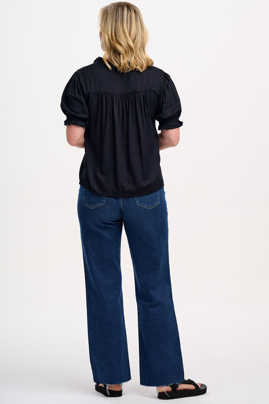 Angelique Shirred Top - Black, Tropical Hummingbird