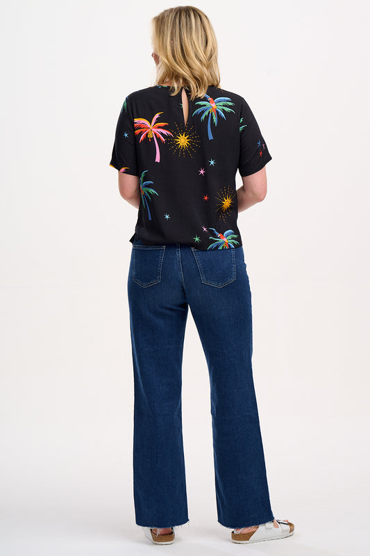 Christina Top - Black, Palms & Sunshine
