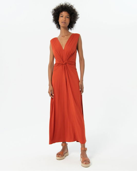 Long plain front knot dress
