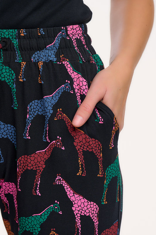 Donna Jersey Joggers- Black Giraffe Spots